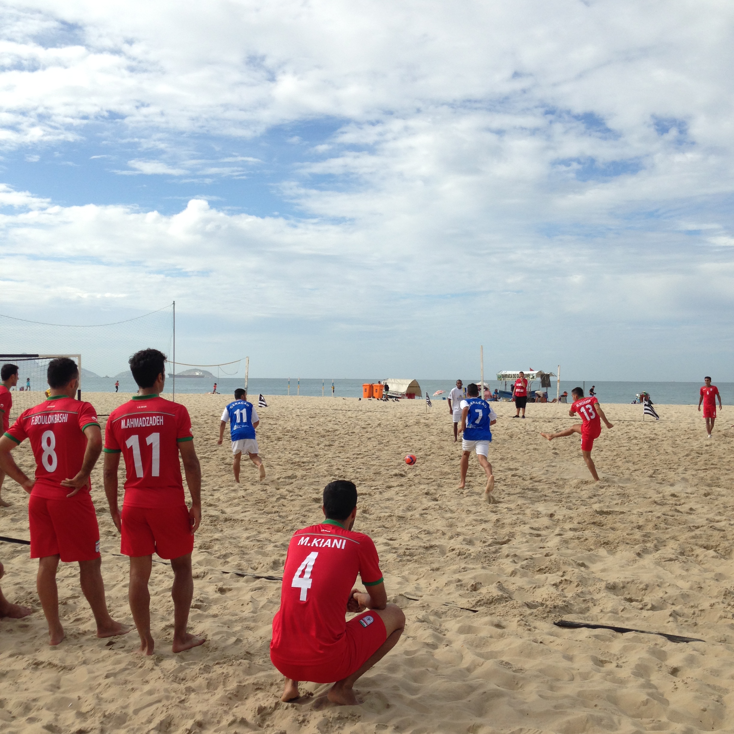 Pois bem, inicio de inverno e a primeira atividade do dia foi dar uma espiada no futebol de areia que estava rolando na praia de Copacabana entre a equipe carioca do projeto Geração e a Seleção do Irã , a convite do amigo Marco Octavio, brasileiro e técnico da seleção iraniana trazida por ele para pegarem um pouco da malandragem do futebol brasileiro.