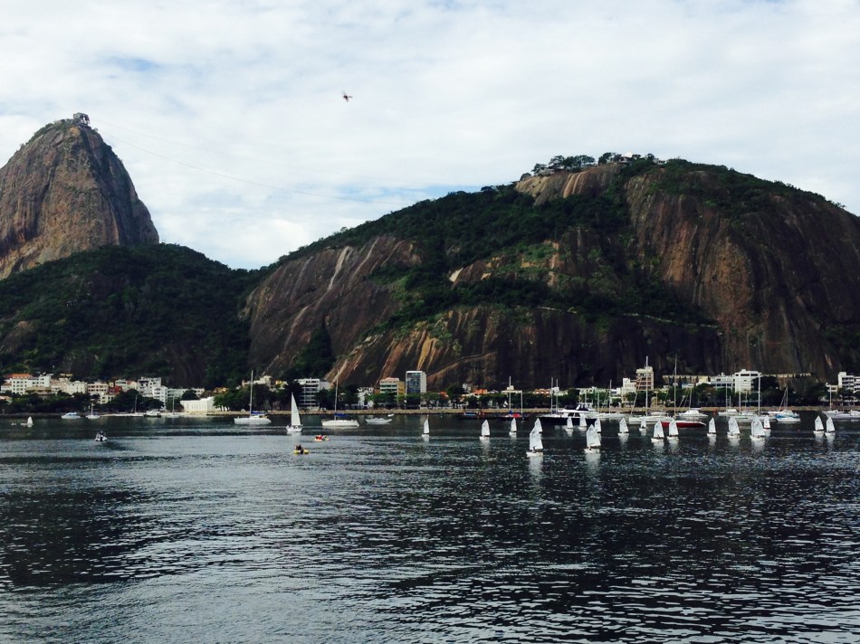Logo depois ao olhar para o lado direito , prova de vela na Baia de Guanabara, e de repente academia de musculação roots ( rústica ). Dia lindo, clima agradável, familiar, com prática de várias atividades ao ar livre.