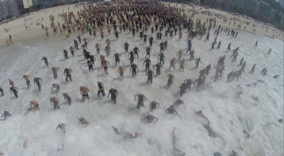 A entrada no mar pelo Leme é dura por que as ondas quebram com vontade, e neste momento tivemos a orientação da organização para conseguirmos entrar e iniciar a prova.