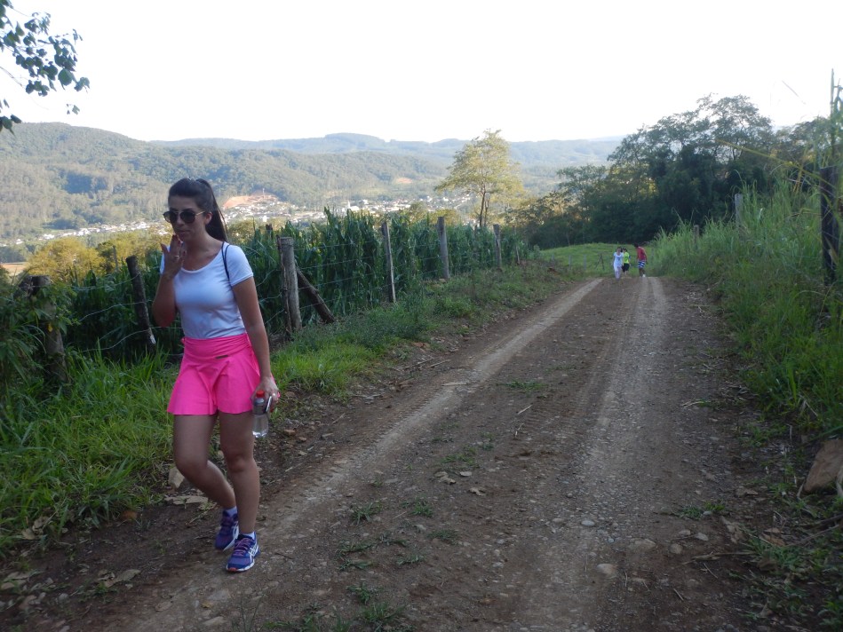 E Gabriela na frente abrindo uma boa vantagem do grupo! E a pergunta que não quer calar…é um bocejo ou um pensamento? rsrs! Brincadeiras a parte Gabriela é parceira nota 1000 e incansável nas caminhadas e na bike!